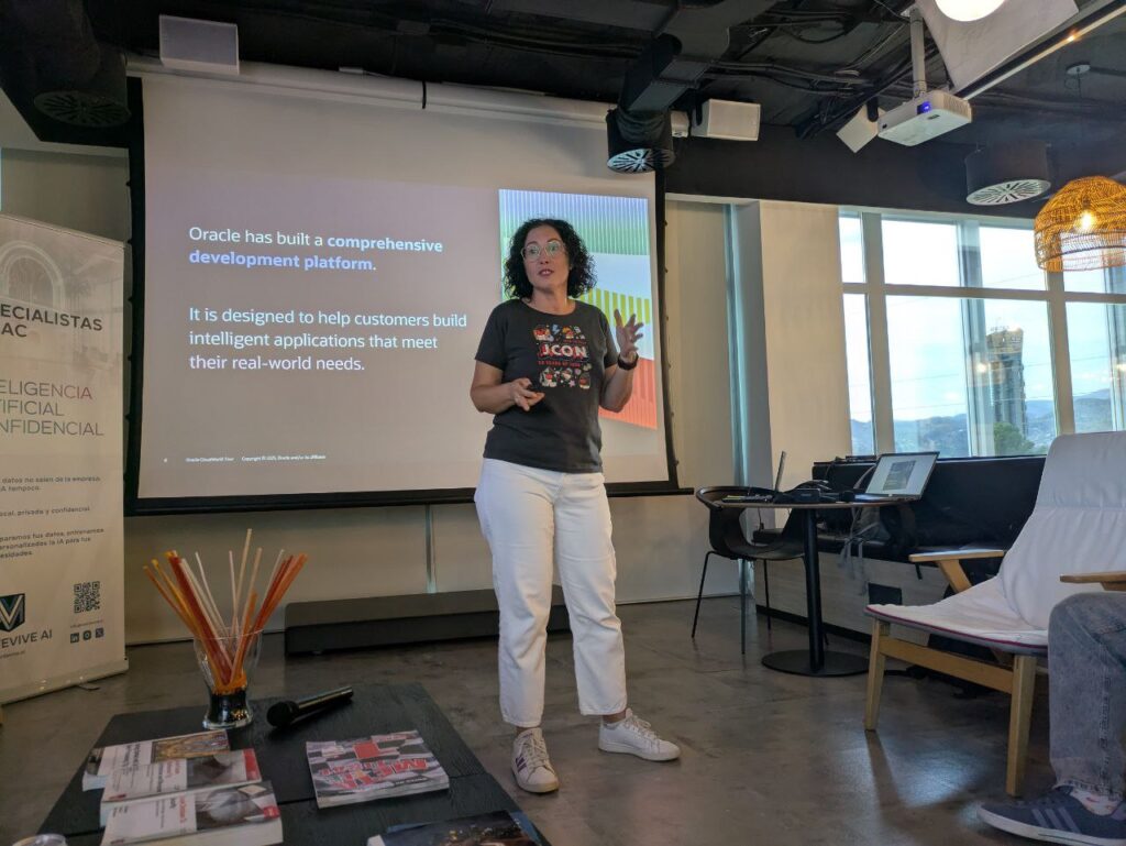 Fue especialmente interesante conocer todo lo que Oracle ofrece a través de su OCI (Oracle Cloud Infrastructure). Destacó particularmente su Code Assistant, una herramienta fascinante que permite convertir código legacy en Cobol a Java moderno, demostrando cómo la IA puede ayudar en la modernización de sistemas críticos empresariales.
