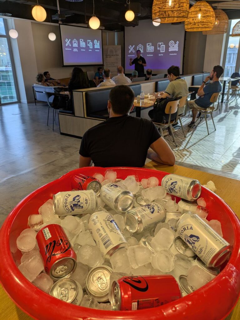 Quizás uno de los aspectos más valiosos del evento fue la sesión de networking posterior a las presentaciones. Con una cerveza en mano, los asistentes pudieron profundizar en conversaciones técnicas, explorar posibles colaboraciones y compartir experiencias en un entorno relajado. Este formato demuestra que algunas de las conexiones más valiosas en el ámbito profesional surgen precisamente en estos contextos más distendidos.